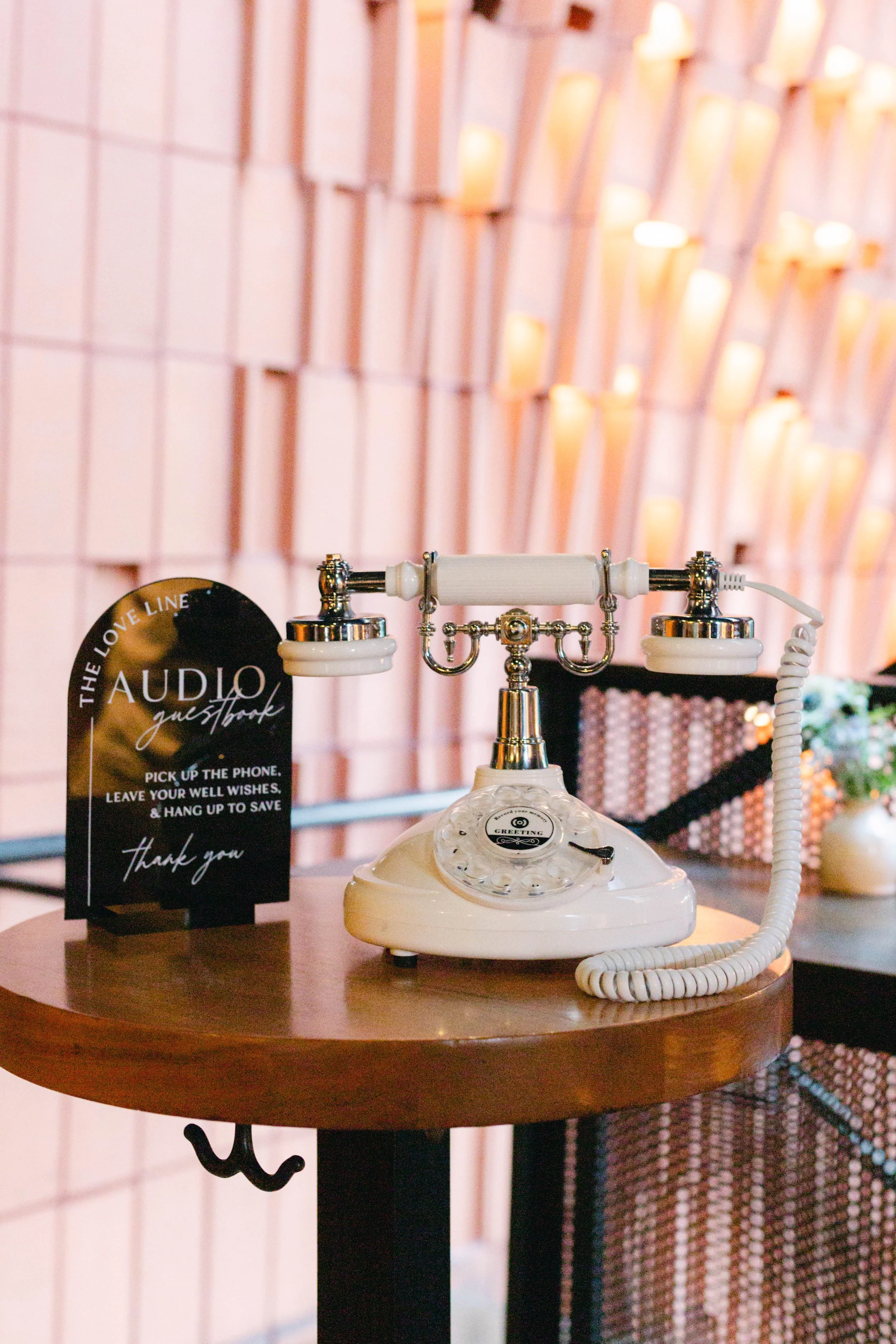 Say goodbye to traditional guestbooks and experience the magic of capturing stories in sound on a nostalgic vintage rotary phone.